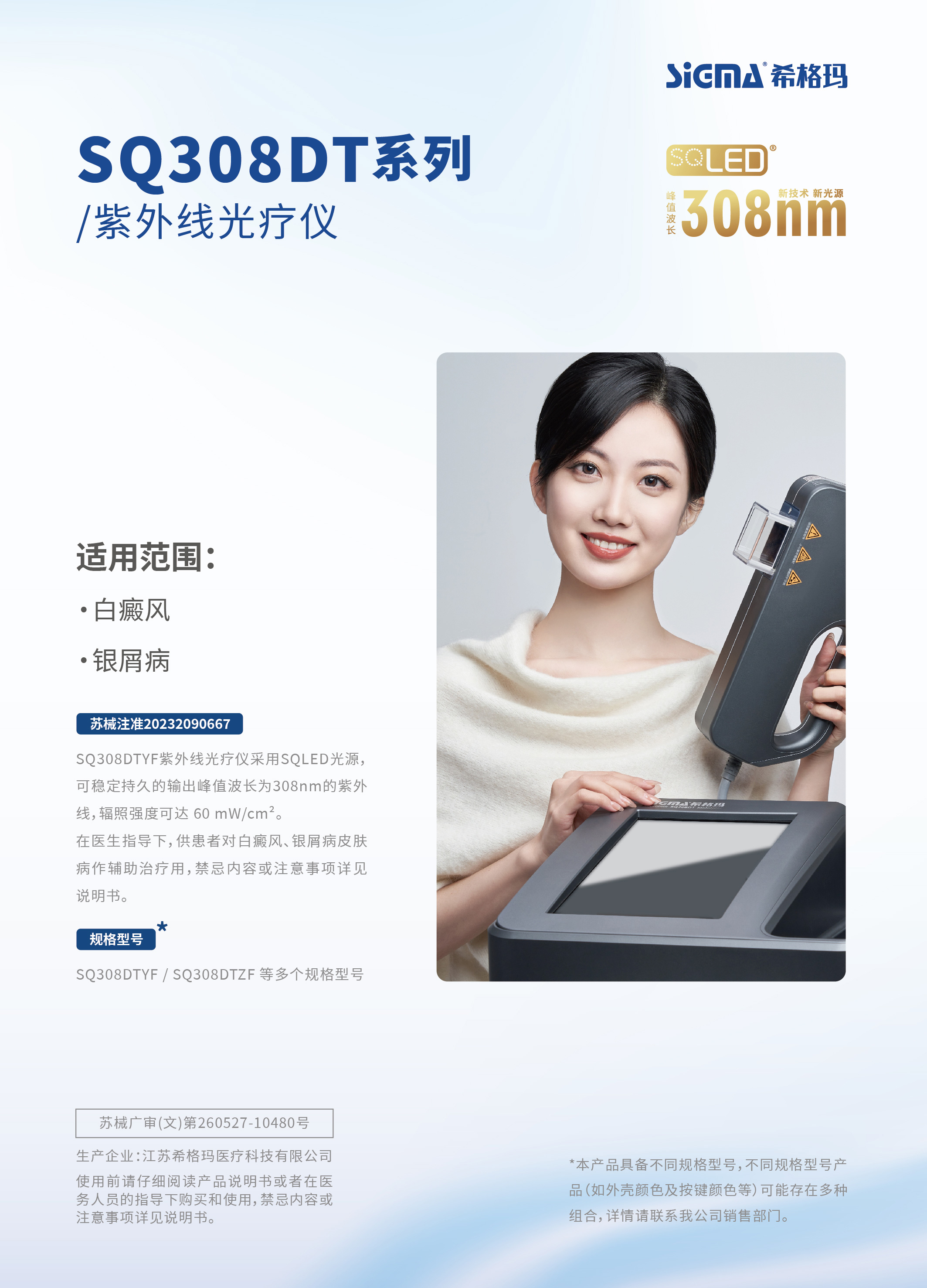 首页 > 产品中心 > 家用 > 308nmSQLED系列 > SQ308DT紫外线光疗仪
